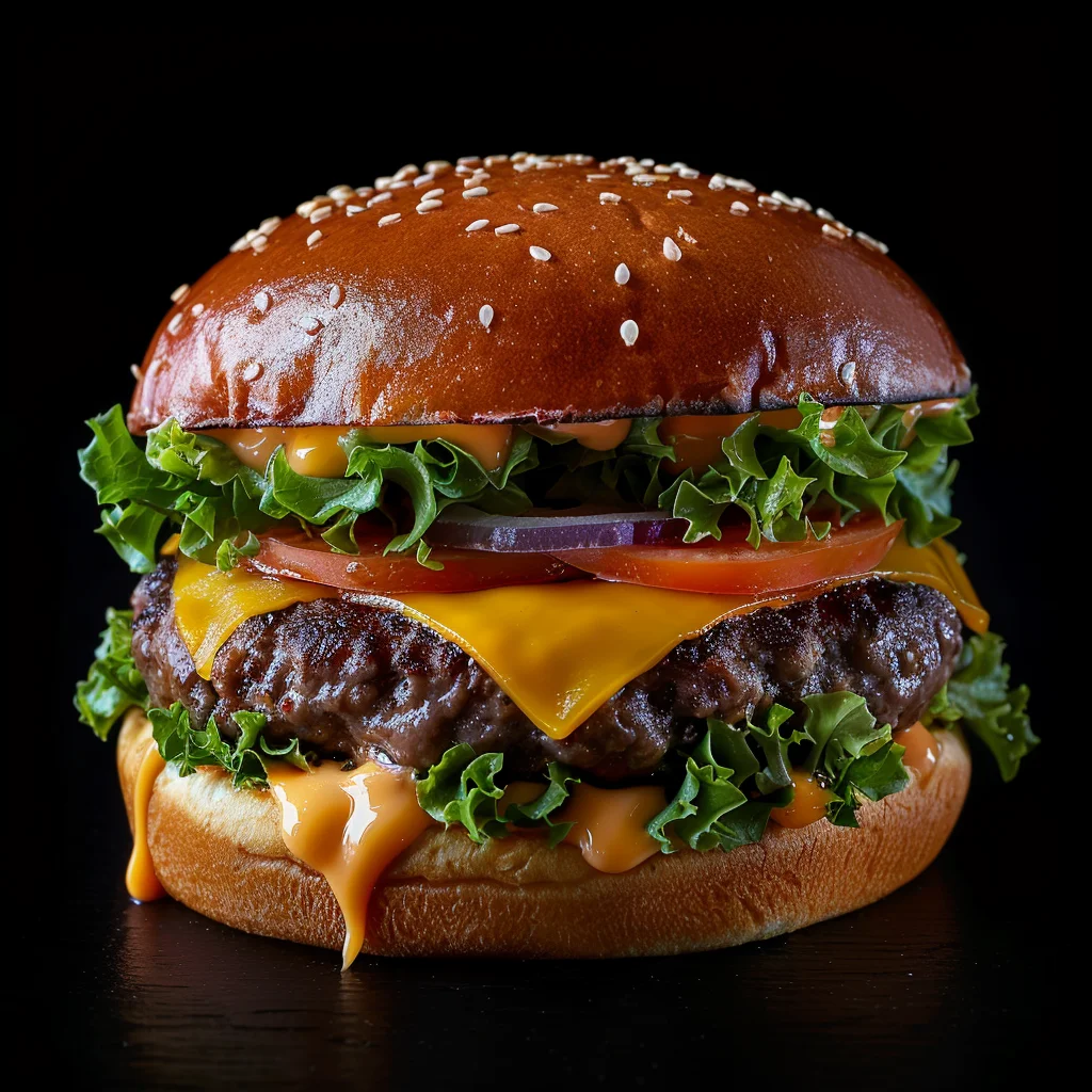Pan, ternera o pollo, lechuga, tomate, cebolla, queso cheddar y salsas.