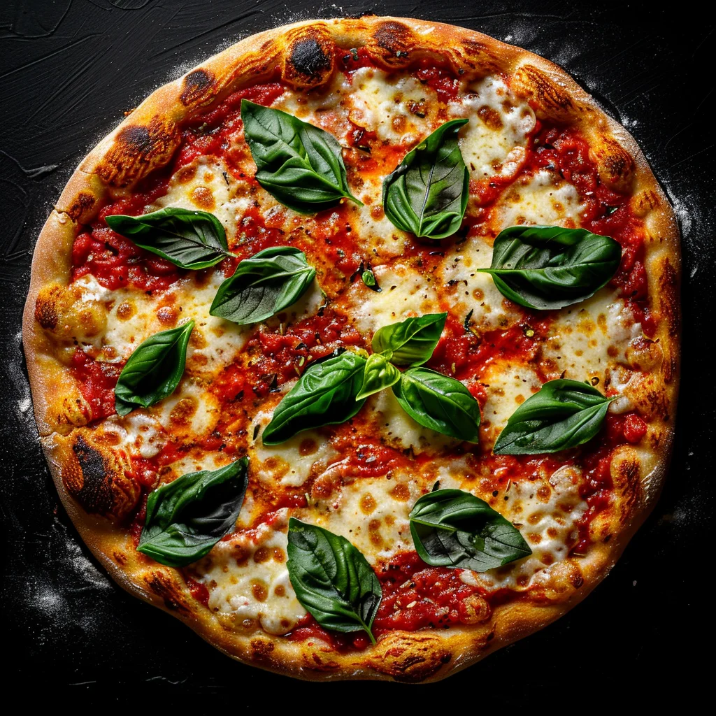 Masa crocante, tomate, mozzarella y orégano.