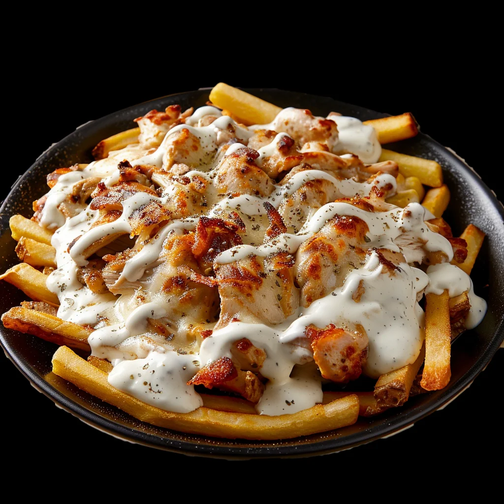 Pollo, patatas fritas y queso mozzarella.